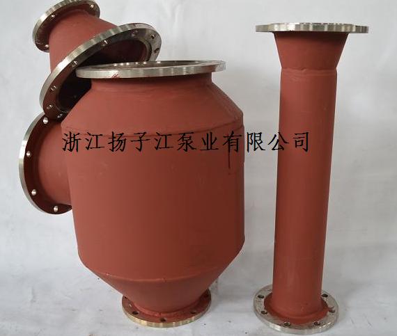 水力噴射器是一種具有抽真空、冷凝、排水等功能的機械裝置。它是利用一定的水壓,通過對稱和固定側斜度的噴俎,使水流會聚在同一個焦點上,由于噴射水流的流度速度高,于是在水柱周圍形成一定的負壓,使器室內產生真空,另外由于二次蒸氣與噴射水流的直接接觸,進行熱交換,絕大部分的蒸氣都被凝結成水,少量未被冷凝的蒸氣和氣體,由于與噴射水流的相互磨擦,混合與擠壓,都通過擴壓關被排出,這時器室內形成更高的真空。